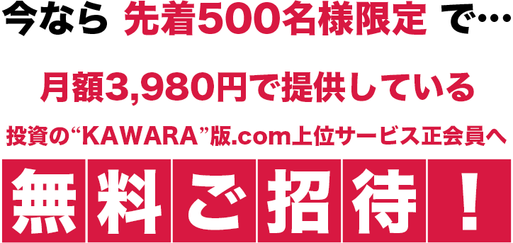 まずは「投資の“KAWARA”版.comの“正会員”へご登録」ください。